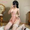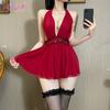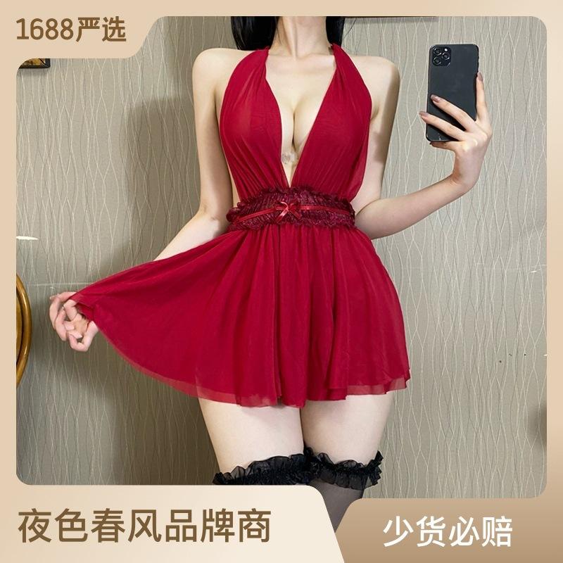 Sexy female deep V open placket temptation backless design perspective double-layer mesh skirt pendulum sexy neck nightdress loungewear