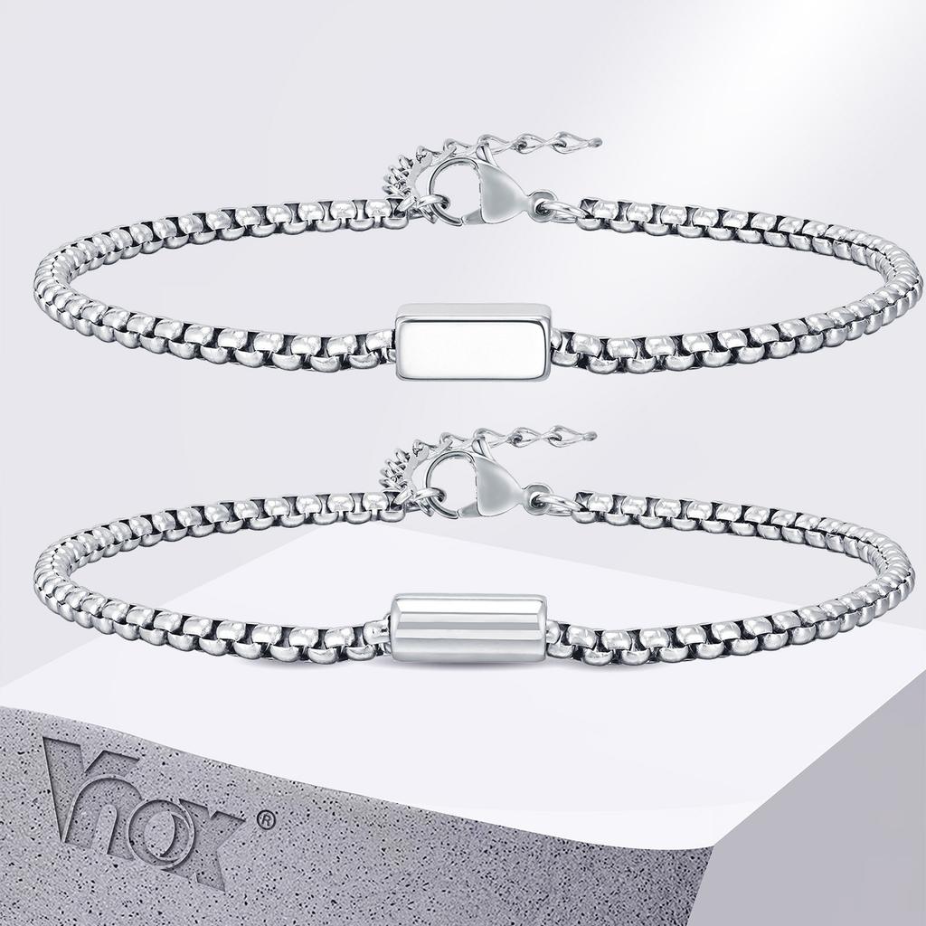 Vnox Geometric Square Round Tube Charm Bracelets for Men Boys, Unisex Box Link Chain Bracelet, Waterproof Simple Metal Jewelry