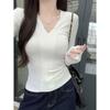 V-neck bottoming shirt for women, spring and summer inner and outer wear, slim fit, pure desire wind, tight temperament, solid color long-sleeved