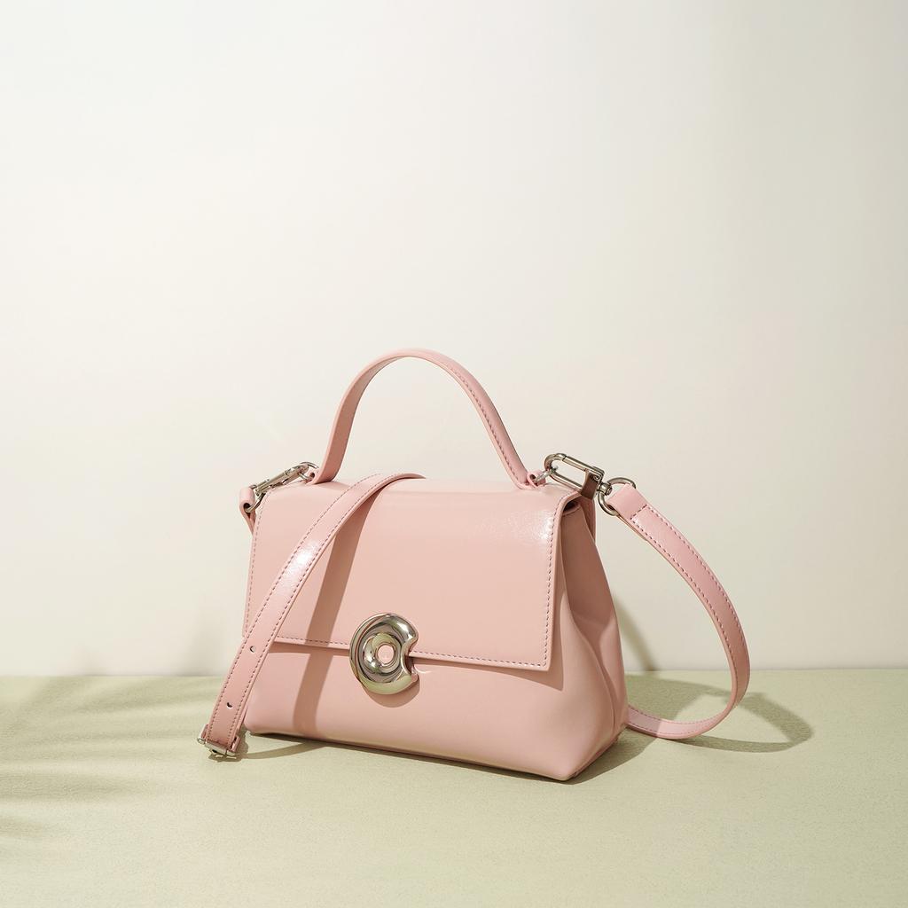 This bag has a stylish, structured silhouette crafted from top - layer cowhide leather. It features a smooth, glossy surface, a short handle, an adjustable shoulder strap, and a distinctive metal clasp, creating a fashionable and elegant look.
