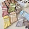 Female Summer Thin Pure Color Stripe Breathable Wide Mouth Month Son Tube Socks