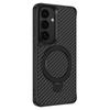 For Samsung Galaxy S24 Ultra Magnetic Case Carbon Fiber Texture Ring Kickstand Phone Cover