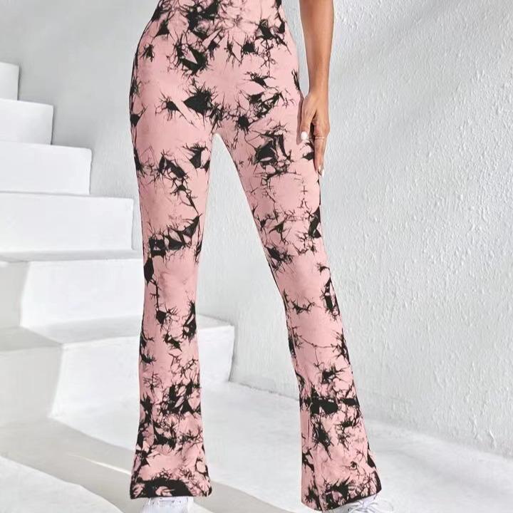 These women's yoga pants feature a vibrant tie-dye design and a flattering high-waist, making them both stylish and comfortable. The wide-leg cut provides ease of movement, ideal for yoga sessions or casual wear. Crafted with an imitation naked feel material, these pants offer a soft, barely-there sensation on the skin, enhancing your comfort whether you're working out or lounging at home.