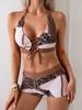 Experience comfort and style with this two-piece swimwear set designed specifically for women. This bikini features a trendy colorblock pattern and a conservative halter tie design, offering both elegance and coverage. Made from durable polyester, it ensures a comfortable fit and long-lasting wear, making it a perfect choice for your beach outings or poolside relaxation.