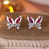 Exquisite Pink Zircon Butterfly Stud Earrings for Women Girls Luxurious Gold Color Wedding Party Jewelry Gift