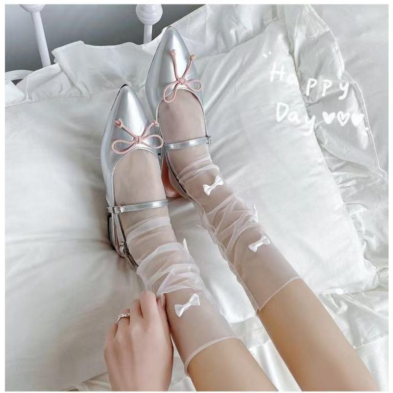 Women's Summer Ultra Thin Hollow Transparent Bow Net Yarn In The Tube Pile Socks