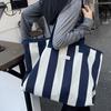 Double-sided back striped canvas bag women's large-capacity lazy wind tote bag student leisure shopping bag bag