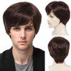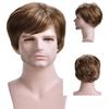 Synthetic Brown Mix Blonde Highlight Wig for Men Short Straight Hair Wig with Side Bangs Mullet Head Wig Daily Cosplay