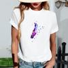 Kadın Modaya Uygun Yuvarlak Yaka Günlük Retro Baskılı Kısa Kollu Tişört Üst