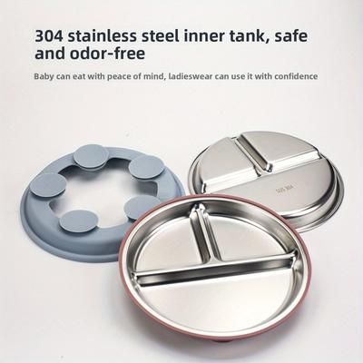 Round 304 Stainless Steel Divided Lunch Box 3 Grids Food Container For Kid Cute 3 Compartments Children's Silicone Dinner Plate