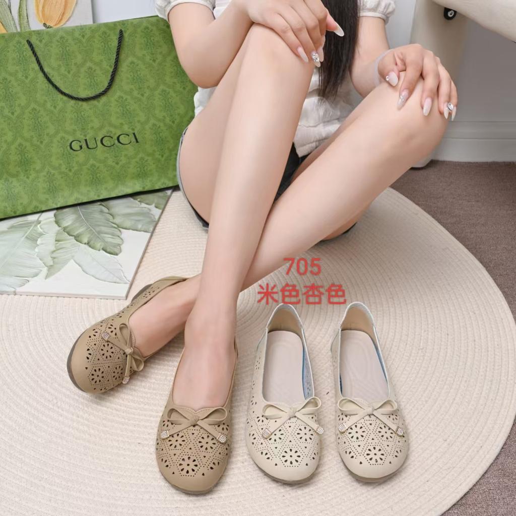 Mom shoes shallow mouth beef tendon soft sole new Doudou shoes flat bottom hollow lazy shoes round head bow breathable