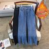 Discover the perfect blend of comfort and style with these Women's Plus Size Velvet-Lined Wide-Leg Jeans. Designed for the autumn and winter seasons, these jeans offer a loose fit with a slimming effect. Made from high-quality denim material, they feature a high waistline for added comfort and support. The pants are elegantly draped with a straight-leg cut and stylishly adorned with sequins, making them a fashionable addition to your wardrobe.