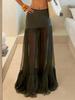 Irregular Lace Trim Mesh Midi Skirt for Women - Spring 2025 High-Waist A-Line Pleated Tiered Design.