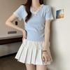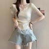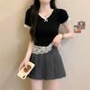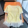 Women's V-Neck Lace Patchwork Slim Fit Short-Sleeve T-Shirt - 2025 Summer