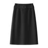 Women's High Waist Black Midi Skirt - 2025 Spring Slimming Design, Long Bodycon Skirt for Petite Frames