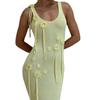 3d Çiçek Örme Uzun Elbise Kadın Seksi İnce V Yaka Sırtı Açık Bölünmüş Kadın Parti Elbiseleri Kolsuz Plaj Bayan Bornozları