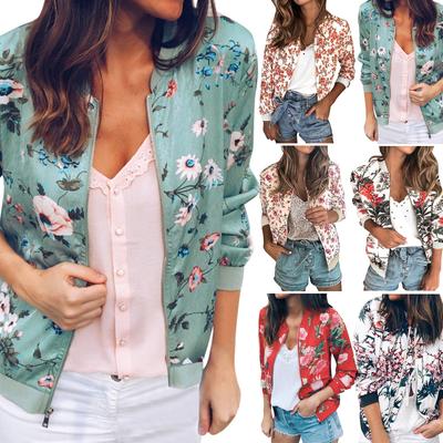 Womens Ladies Retro Floral Zipper Up Jacket Casual Coat Outwear