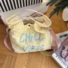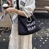 Autumn/Winter Quilted Canvas Tote & Crossbody Bag with Korean Style Embroidered Lettering