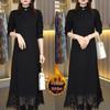 Women's Summer Casual Pleated Skirt Dress with Hood, Long Sleeves, Loose Fit, Plus Size, and High-End Slit Mid-Length Design.