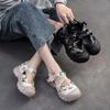 Johnature Retro Round Toe Breathable Mesh Sports Sandals Genuine Leather Lightweight Women's Shoes
