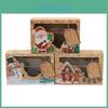 12 ADET/set Yeni Yıl Hediye Kutusu Cupcake Şeker Kutusu Kraft Kağıdı Noel Kurabiye Kutusu Şeffaf Pencereli Fırın