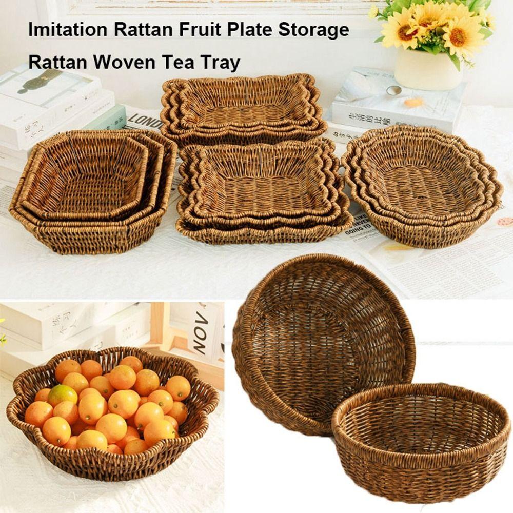 Multistyles Imitation Rattan Fruit Plate Retro Woven Handheld Storage Rattan Woven Tea Tray Picnic Snacks Sundry Baskets