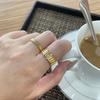 European & American Geometric Thread Ring in Titanium Steel with 18k Gold Plating, Non-Adjustable Open Design