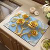Flower Printed Drain Pad Rectangular Coffee Machine Drying Mat Absorbent Drain Dish Pads Tableware Sink Rugs Placemat