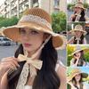 New Summer Straw Hat Women's Pearl Wide Brimmed Sun Hat Trendy French Retro Hepburn Flat Top Sun Protection Hat