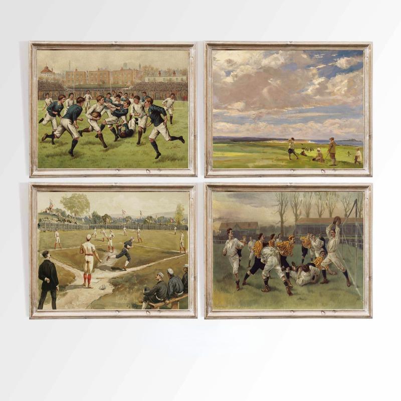 Vintage Sports Boy Playing Soccer Football Baseball Golf Art Poster Canvas Painting Wall Prints Picture for Teen Room Home Decor