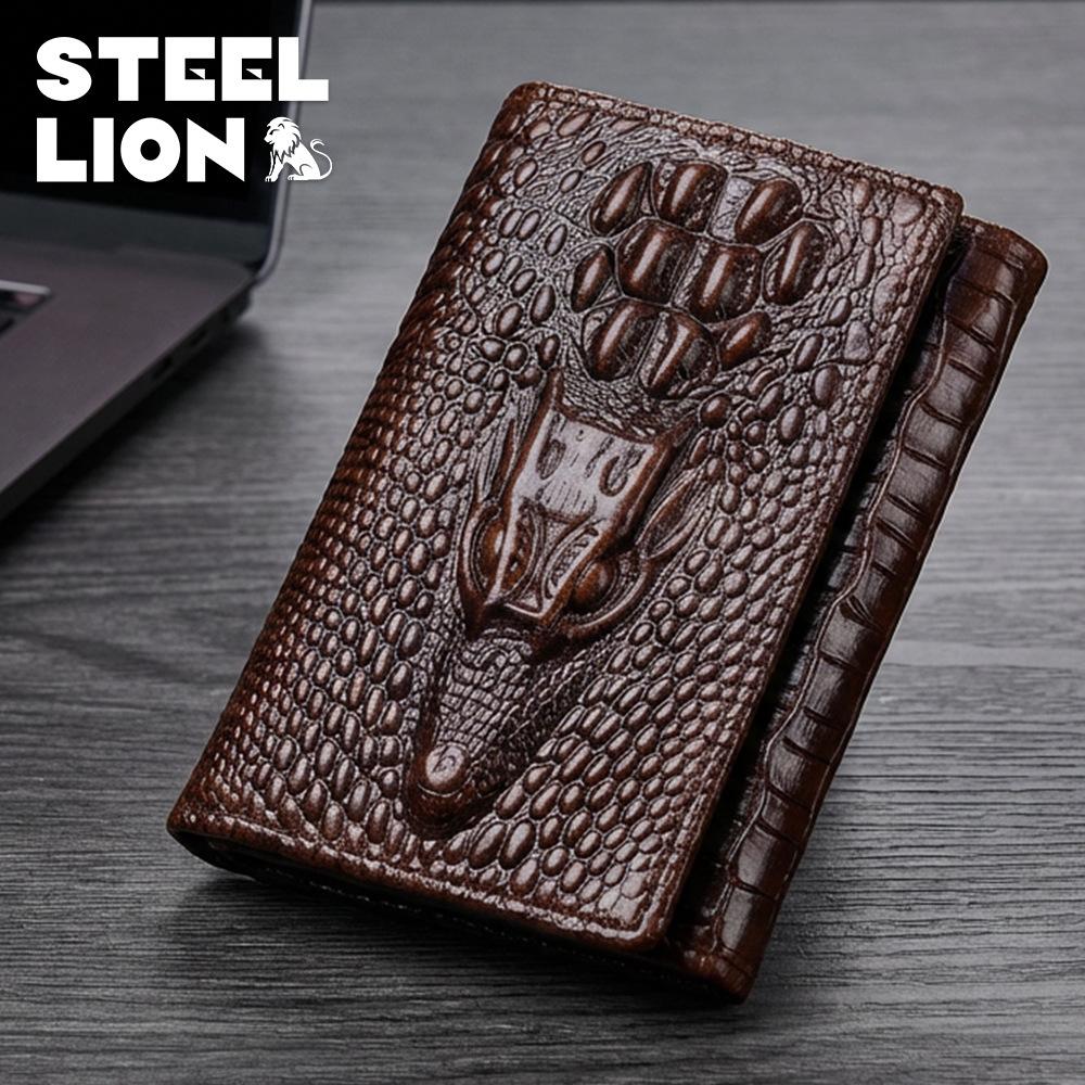 LAOSHIZI Vintage Erkek Hakiki Deri Timsah Kabartmalı Cüzdan RFID Engelleme Çoklu Kart Yuvaları Fotoğraf Bölmesi