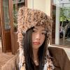Korean Version, Leopard Print, Plush Fisherman Hat, Female, Autumn and Winter New Style, Small Face, Ear Protection Hat, Thick and Warm, Faux Fur Hat