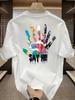 Palm Print Short-sleeved T-shirt Men's and Women's Summer Trend Men's T-shirt White Cotton Loose Versatile Top