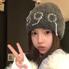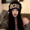 Letter white knitted wool hat women's autumn and winter versatile big head circumference bag head cold hat showing face small pile hat