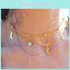 Women's Vintage Simple Multilayer Crescent Star Bead Polished Short Necklace AVE