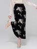 Qooth Women Satin Floral Printed Calf Length Skirt Elegant Elastic Waist Acetate Skirt QT2144