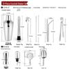 700ml Stainless Steel Cocktail Set Boston Shaker Mixer Drink Making Tool Kit 11pcs for Home Bar Use Black+Silver