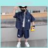 Boys Denim Suit Summer Children's Short Sleeve Shirt Shorts Sports Korean Tracksuit Sets Kids Suit