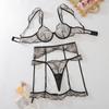 4pcs Sexy Ultra-thin Mesh Women'S Lingerie Set with French Hollow Lace Breathable Bra Thong Thigh-High Socks and Thigh Lace Trim