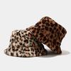 Autumn and winter velvet hat women's retro leopard print bucket hat casual versatile bucket hat sunshade basin hat