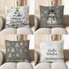 New Style Gray Christmas Tree Snowflake Christmas Pillowcase Linen Print Pillowcase Festive Sofa Decoration