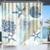 Modern Geometric Shell Textured Ocean Blue Shower Curtain, Bathroom Decorative Shower Curtain, Waterproof Shower Curtain with Ho