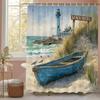 Okyanus Deniz Feneri Plaj Ahşap Tekne Duş Perdesi, Banyo Dekoratif Duş Perdesi, Kancalı Su Geçirmez Duş Perdesi