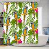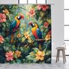 Parrot shower curtain with flowers and leaves, bathroom decorative shower curtain, waterproof shower curtain with hooks