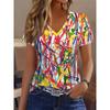 Women's T-Shirts 3D Geometric Color Blocks Graphics Fashion Short Sleeved V-Neck Regular Tops Daily Prints Tee Summer Casual Tops