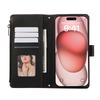 For iPhone 16e Case Multi Card Slots Zipper Leather Phone Cover with Wrist Strap