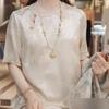 Popular shirt satin embroidered crew neck short-sleeved shirt 2025 summer jacquard new top