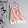 QICED Kadın Modası Günlük Düz Renk Baskılı Kolsuz O Yaka Bluzlar & Gömlekler