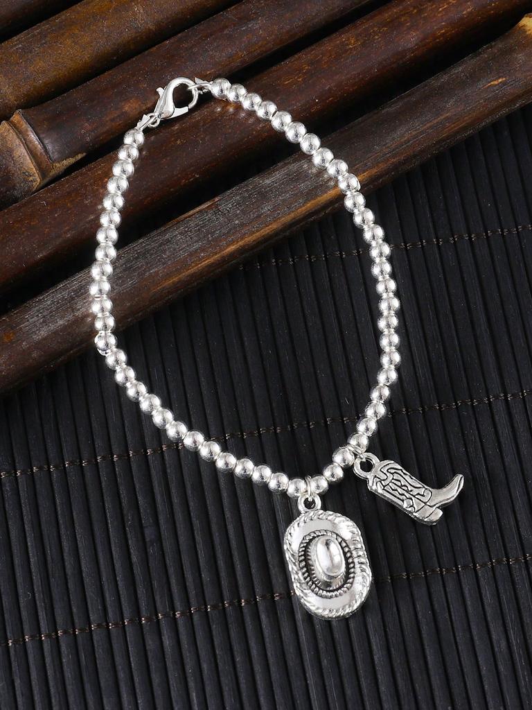 1 Pc Vintage Western Cowboy Hat, Boots Pendant Beads Bracelet,