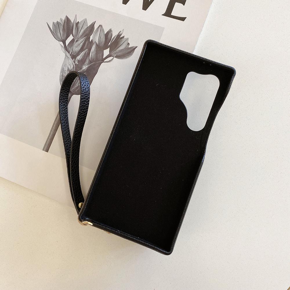 For Samsung Galaxy S24 Ultra Case Zipper Card Slots PU Leather Phone Back Cover with Wrist Strap